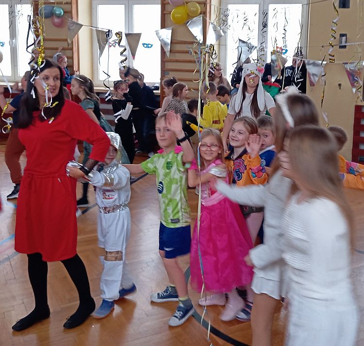 30 stycznia 2026 r. w naszej szkole odbył się Bal Karnawałowy, w którym wzięła udział klasa 1b. Uczniowie z radością prezentowali swoje kolorowe i pomysłowe stroje, wcielając się w różne postacie. Podczas wspólnej zabawy przy muzyce wszyscy świetnie się bawili, a bal dostarczył dzieciom wielu radosnych chwil.