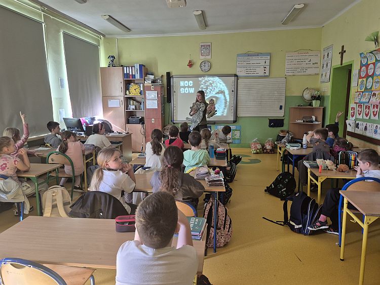 Podczas spotkania dzieci dowiedziały się wielu interesujących informacji o tych niezwykłych ptakach – o tym, gdzie żyją, czym się żywią oraz jakie mają zwyczaje. Uczniowie poznali również charakterystyczne cechy sów, takie jak doskonały słuch, świetny wzrok oraz umiejętność niemal bezszelestnego lotu. Nie zabrakło także ciekawostek o sowach żyjących w Polsce, m.in. o Puszczyku zwyczajnym, Uszatce zwyczajnej czy Płomykówce zwyczajnej.